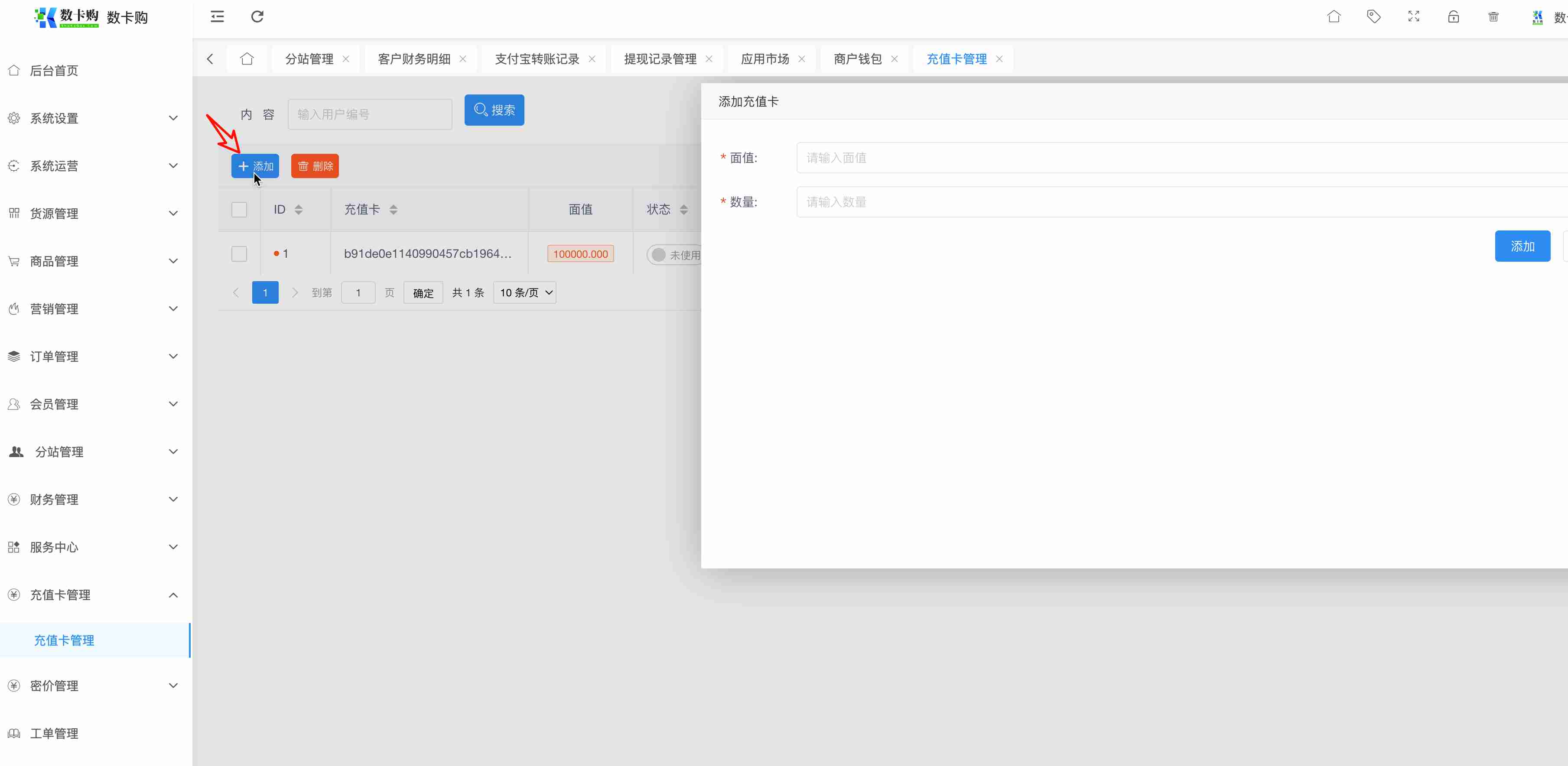添加充值卡