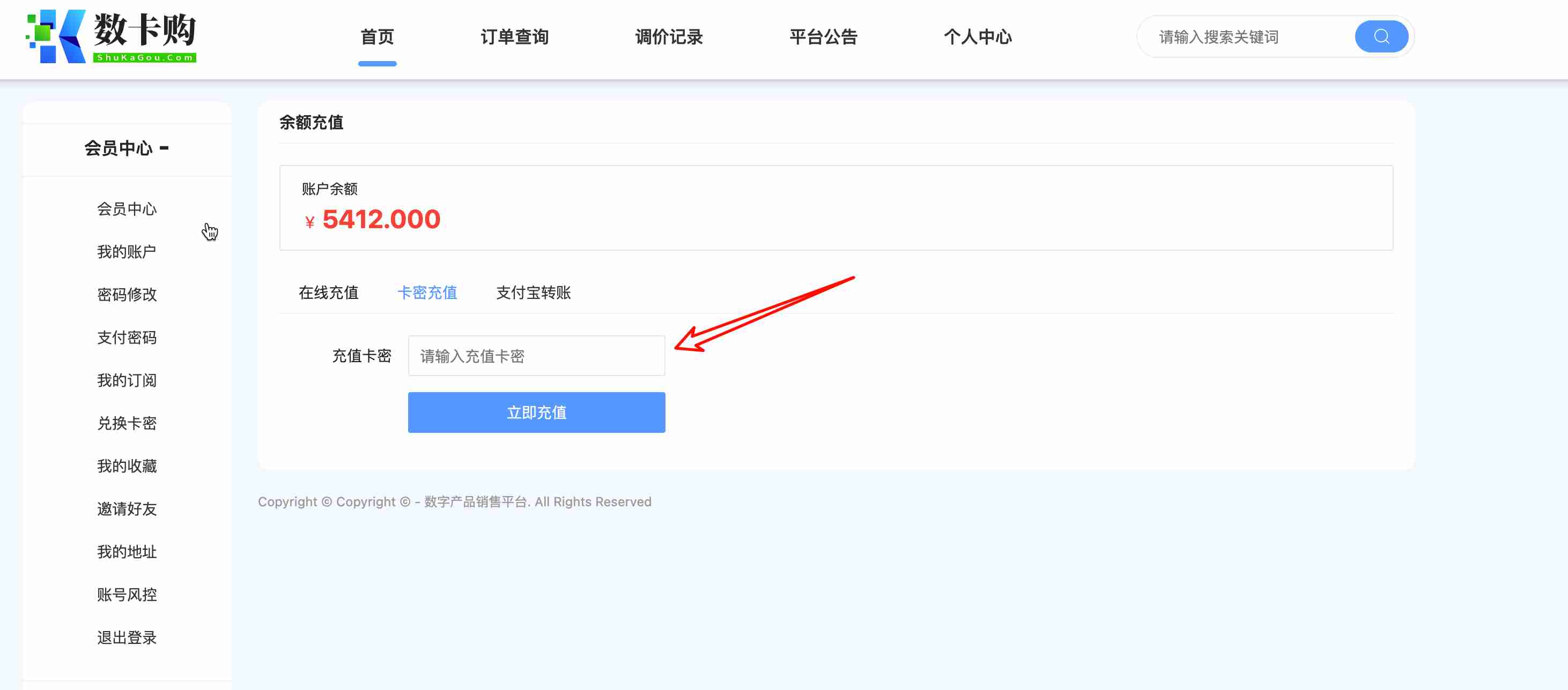 前台 - 会员中心 -卡密充值