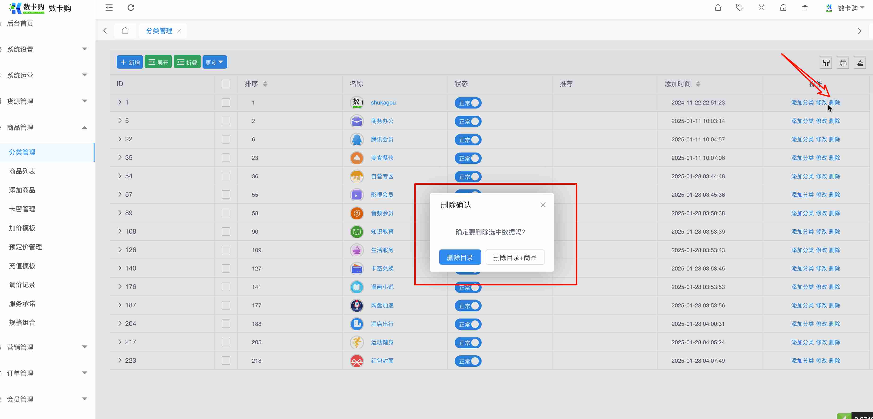 删除分类