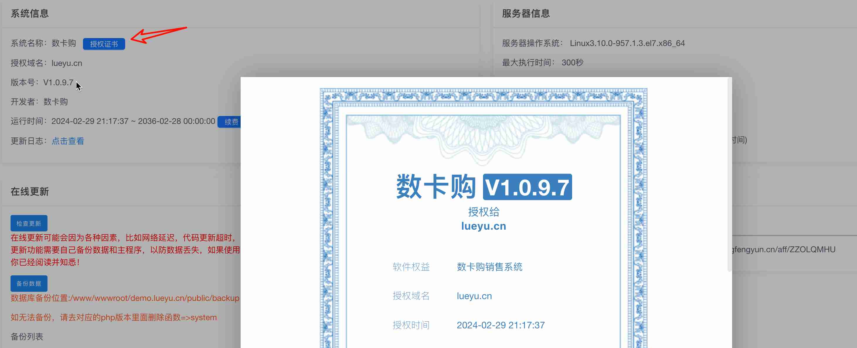 可下载数卡购系统授权证书