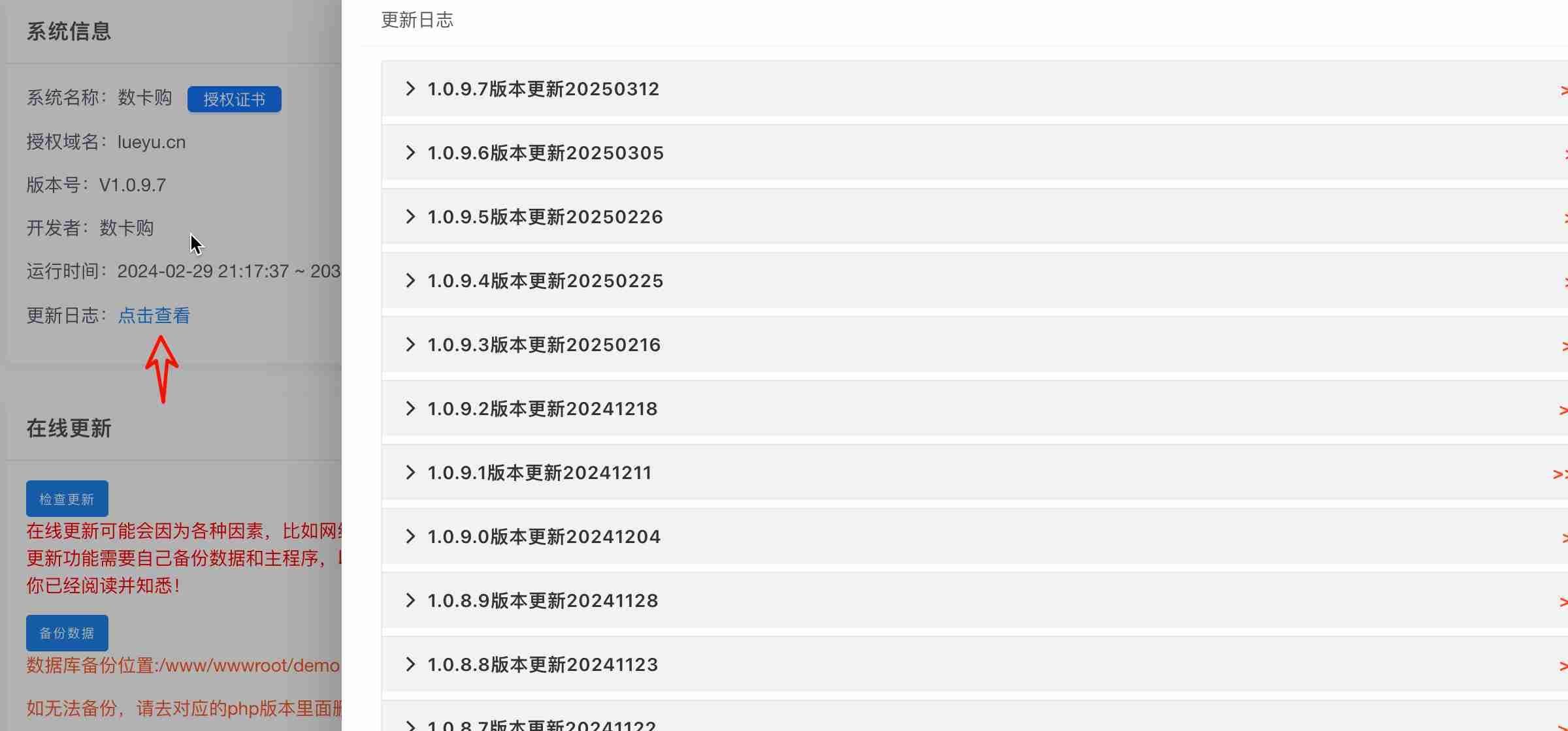 查看数卡购系统更新日志