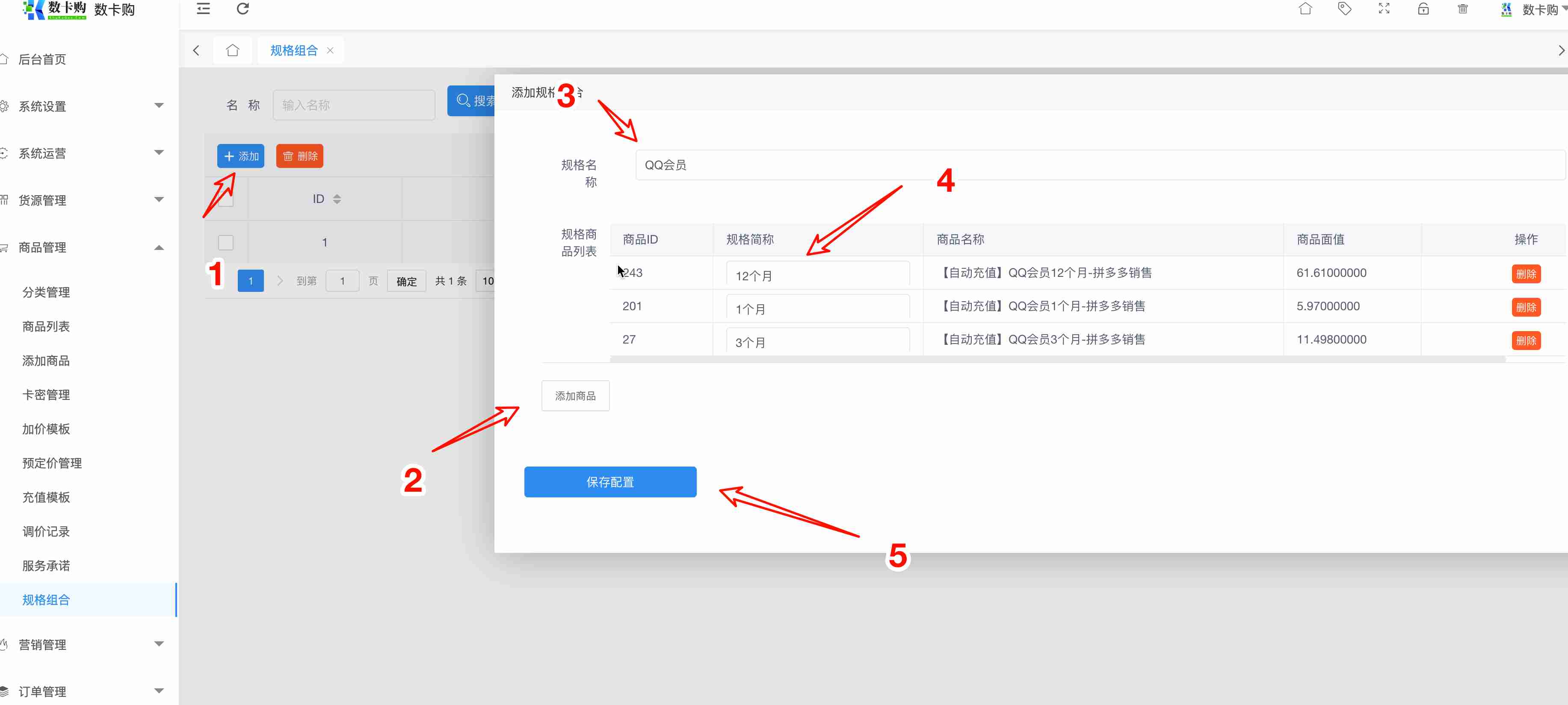 规格组合