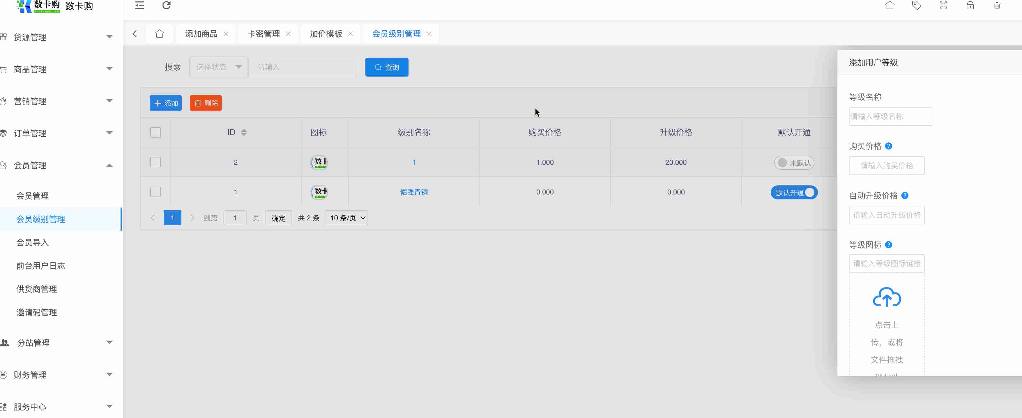 如果已设置过现在要新增等级,记得重新设置商品预定价及加价模板。