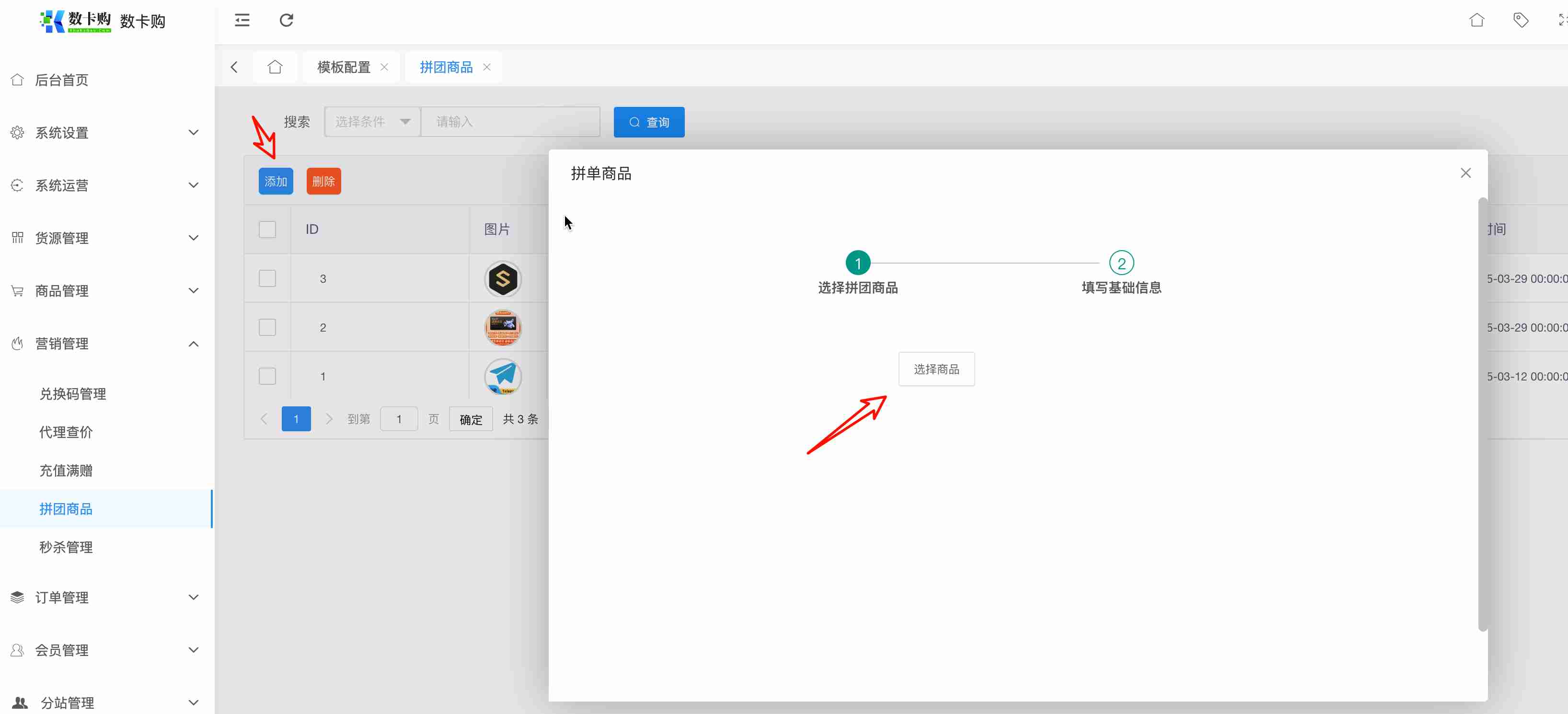 添加新的拼团商品