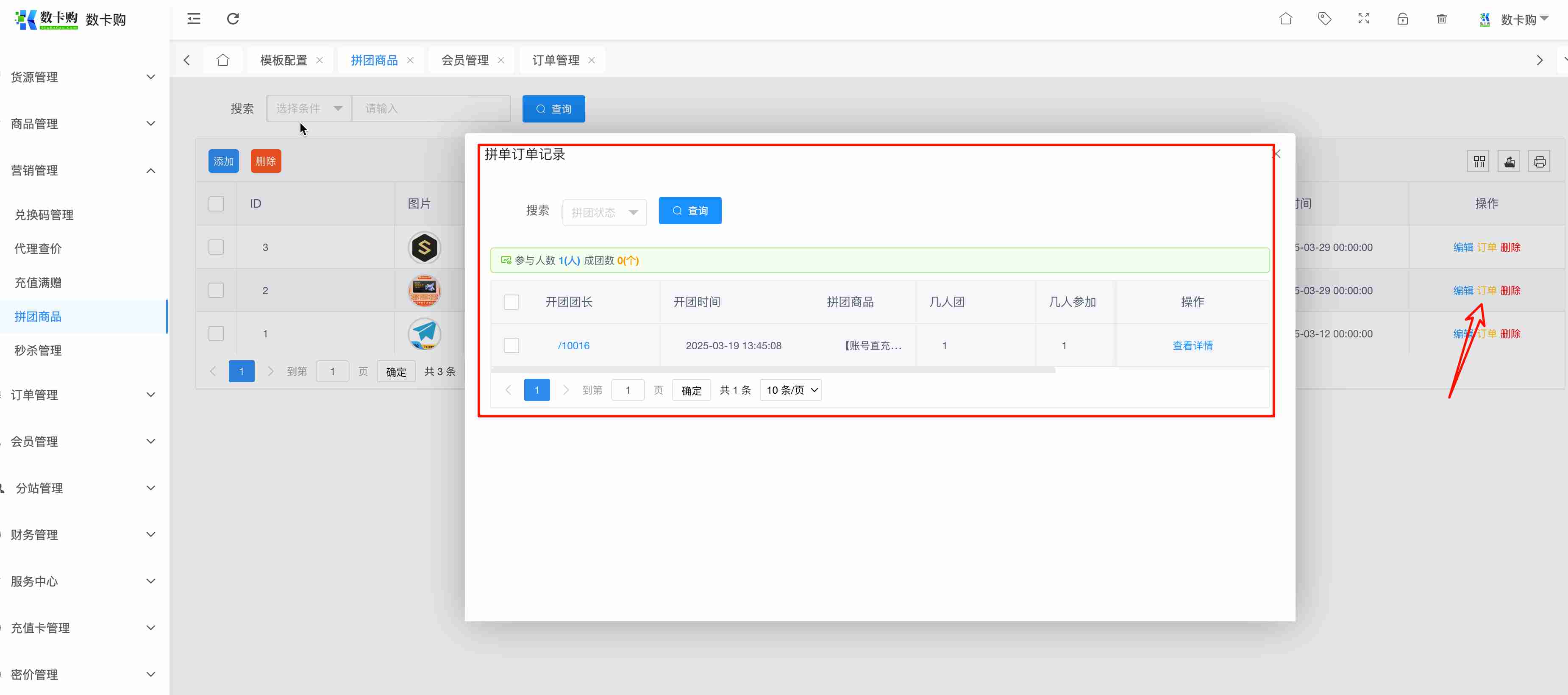 在拼团商品的订单入口处,可以看到当前详情。