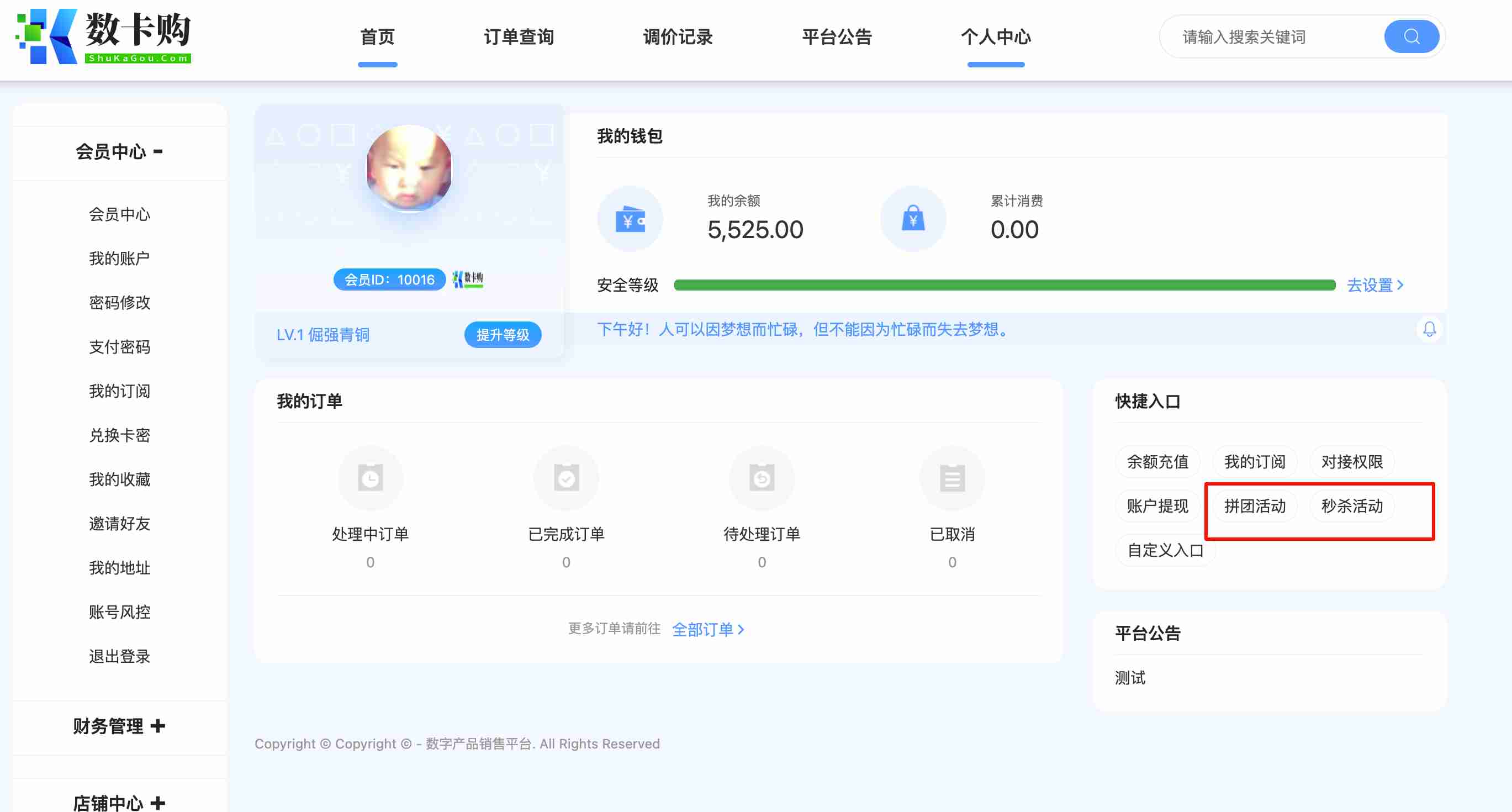 用户在个人中心可以进入到拼团入口。或者是用:你的域名/rroup.html 进入、用户参团后,即可获取推广链接