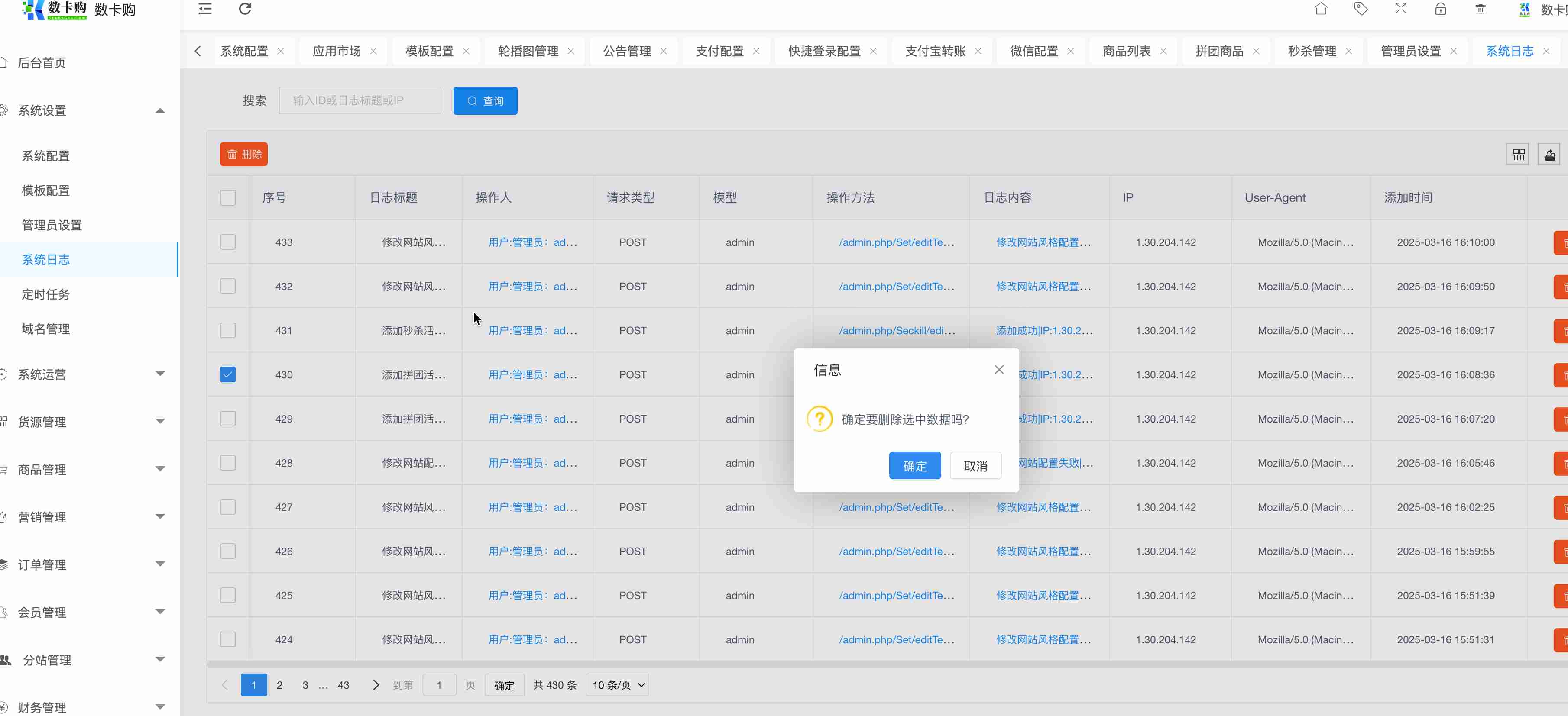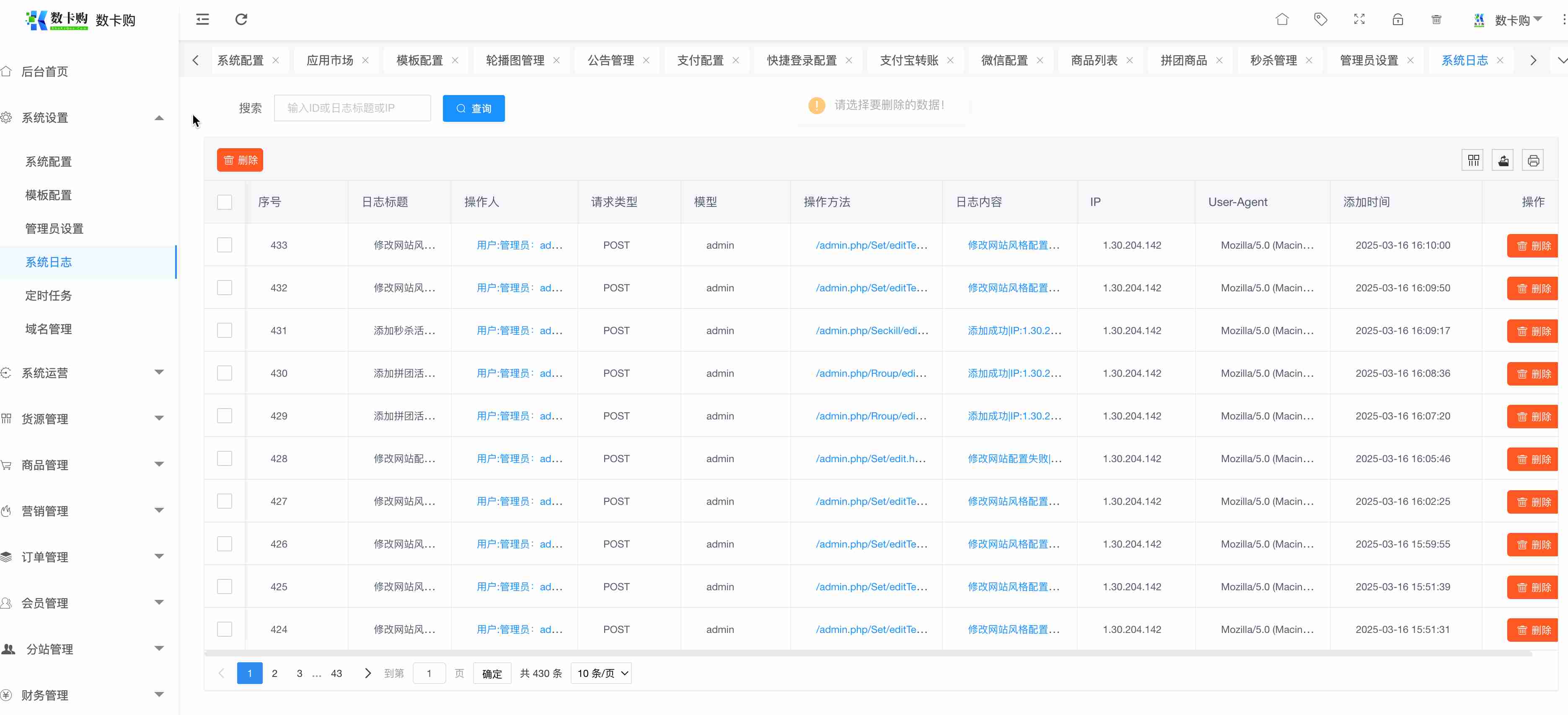 可查看系统后台操作日志