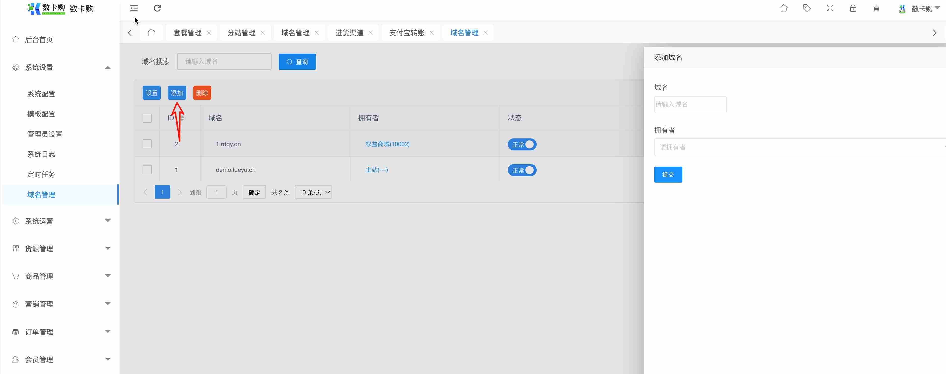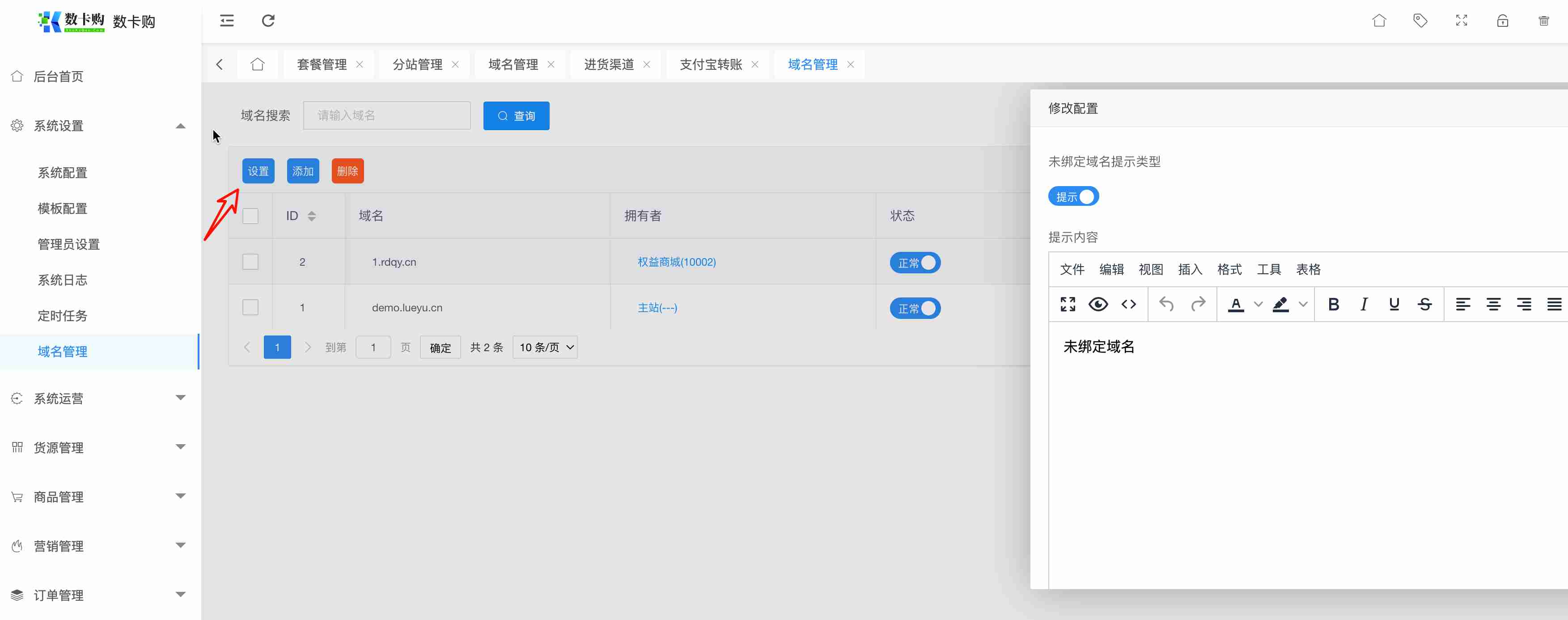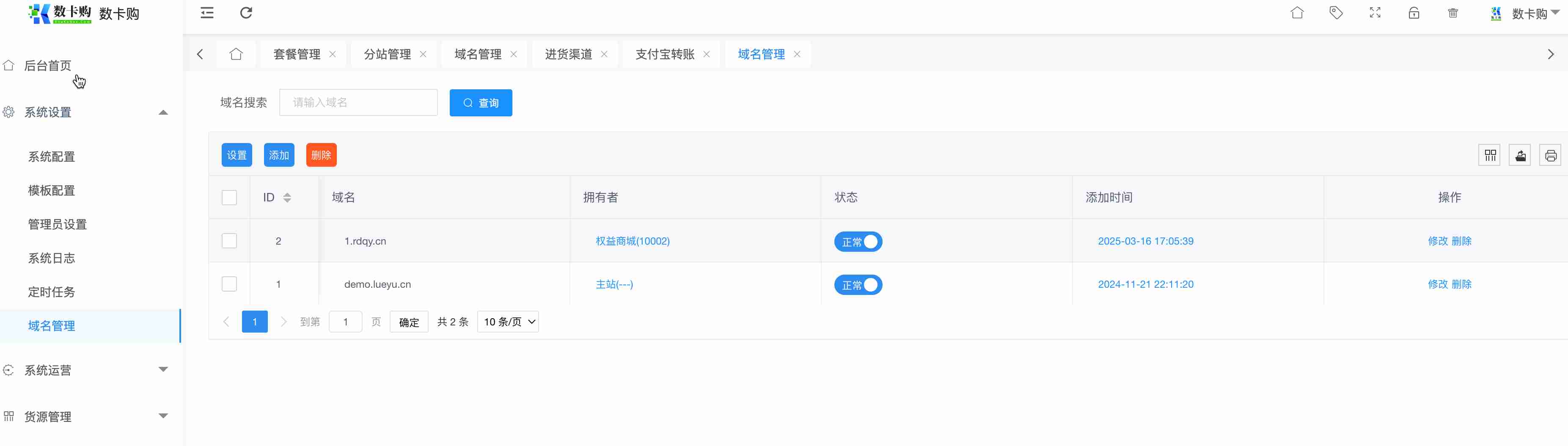 数卡购系统分站域名和分站额度无限制,不需要授权。