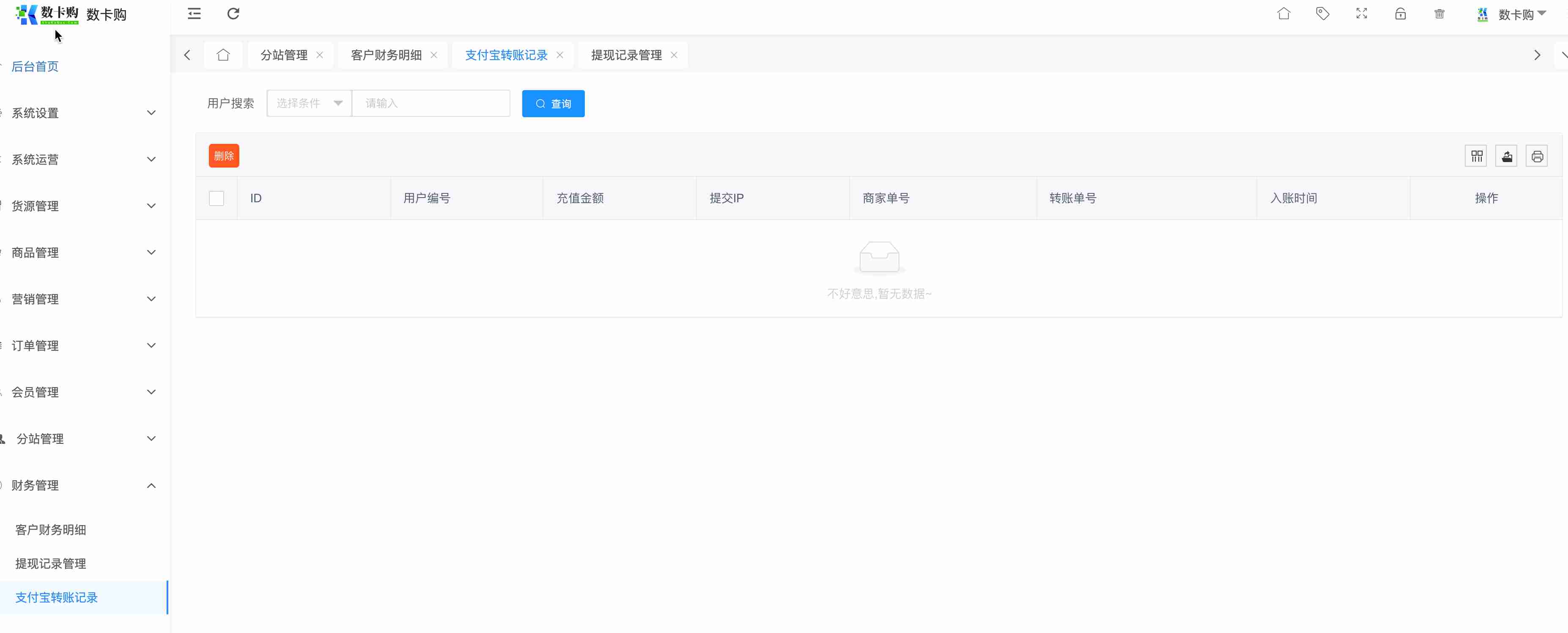 如果开启支付宝转账加款插件后,通过支付宝转账加款的记录将在这里展示