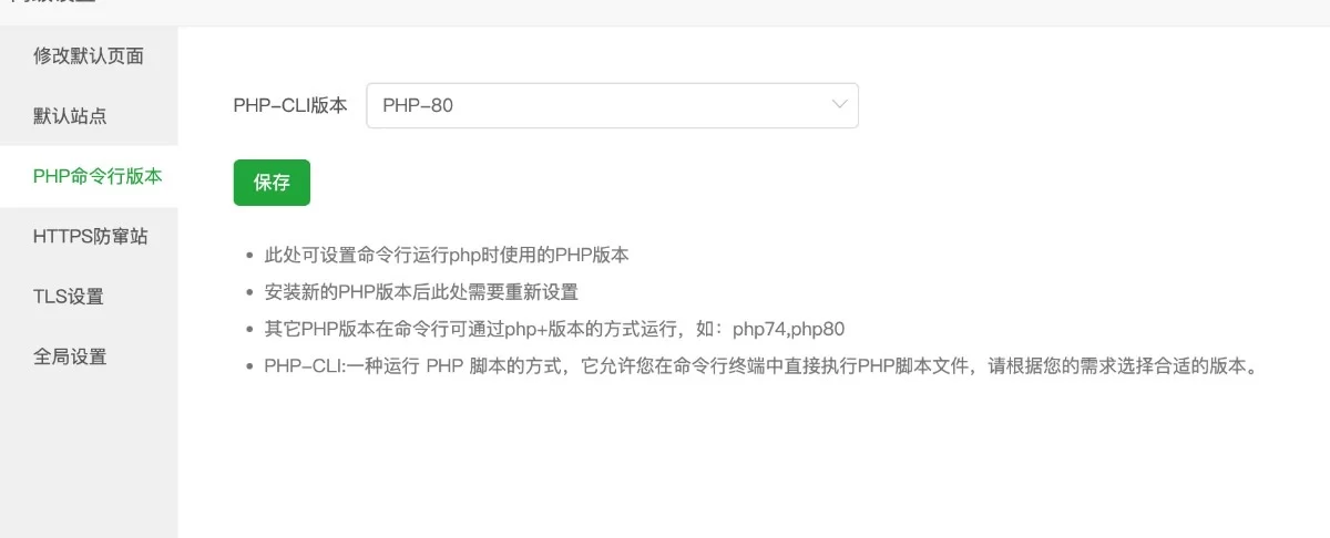 1.设置PHP命令行版本(必须为当前站点php版本)