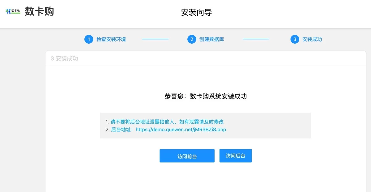 访问首页按照提示完成安装