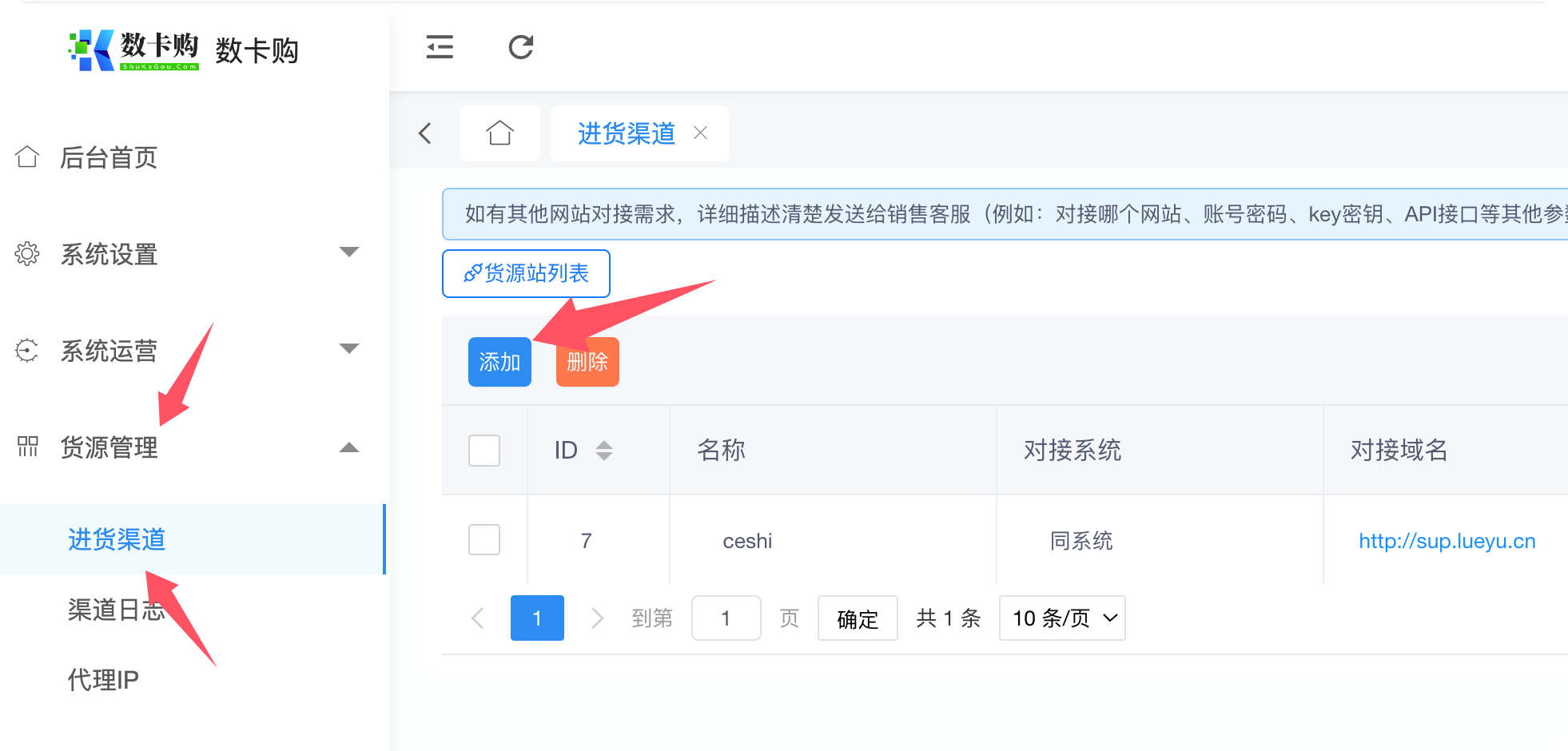 在系统后台-货源管理-进货渠道-添加
