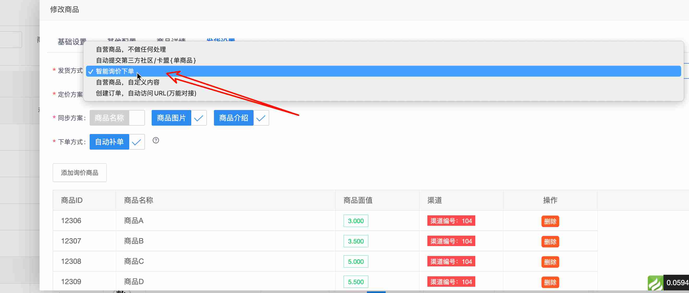 2.找到发货设置,发货方式选择智能询价下单