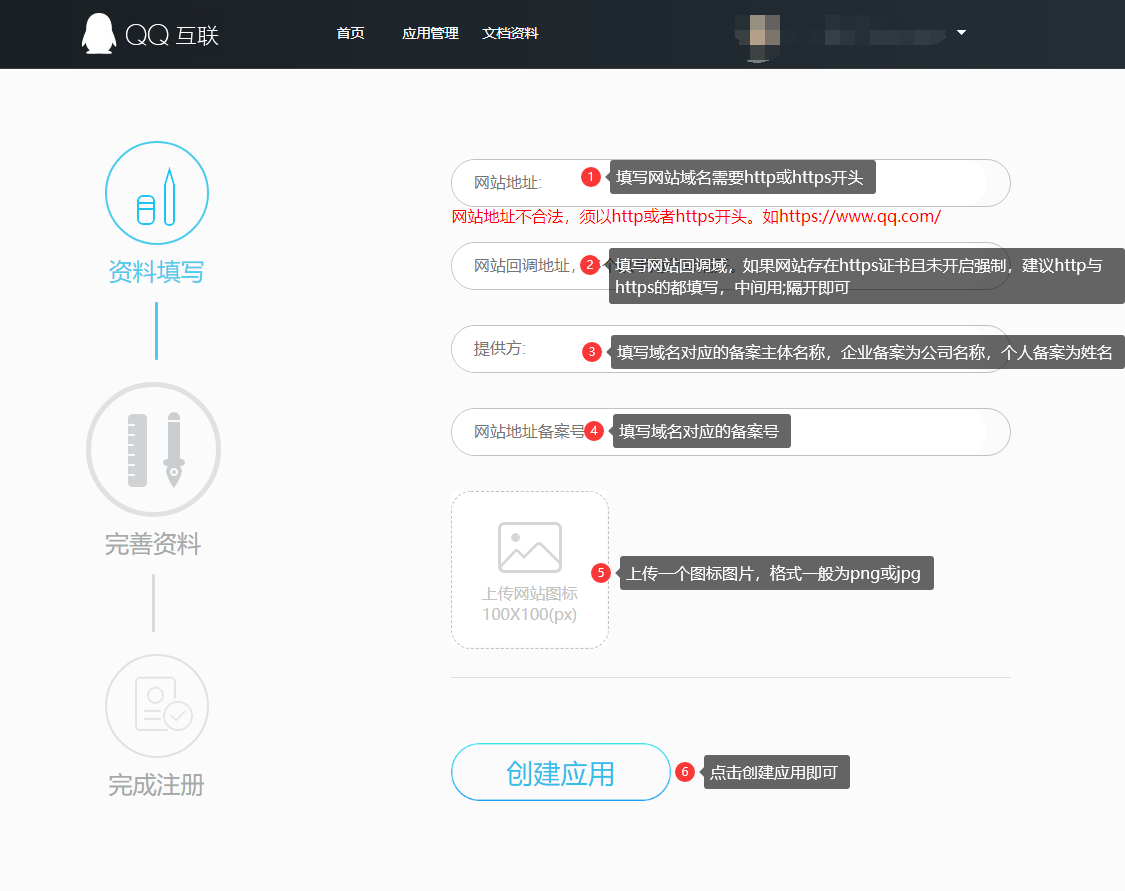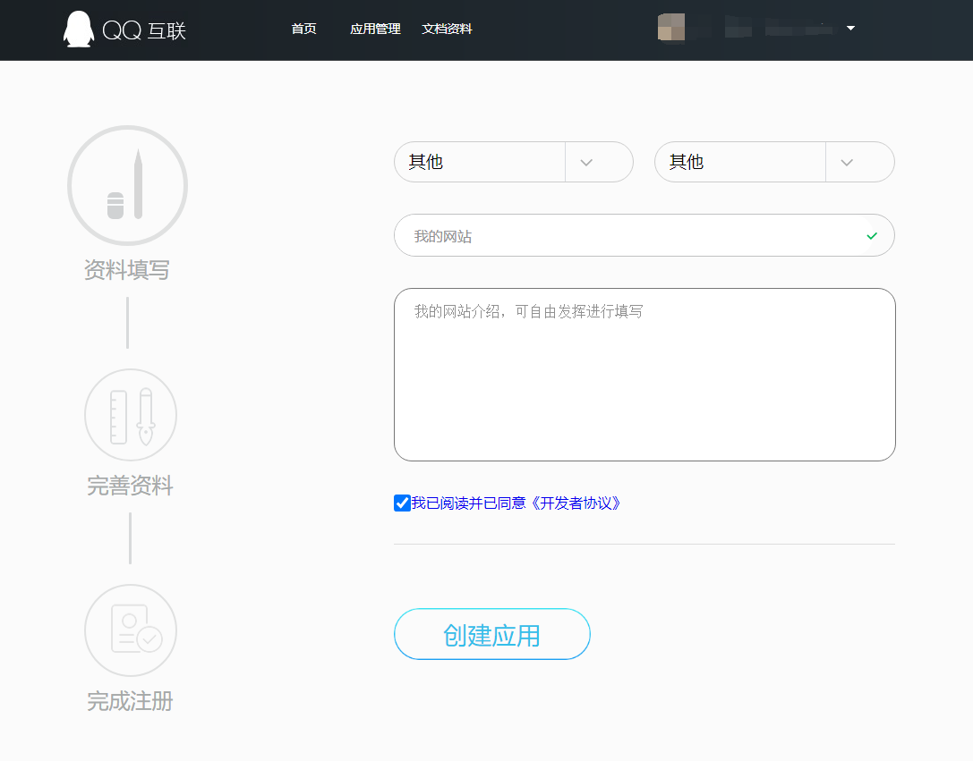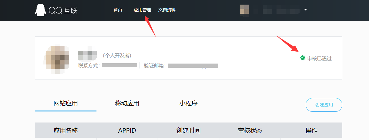 1.访问并登录QQ互联网站,进入应用管理,确认开发者资料已审核通过,如果未认证的需要先申请开发者认证。