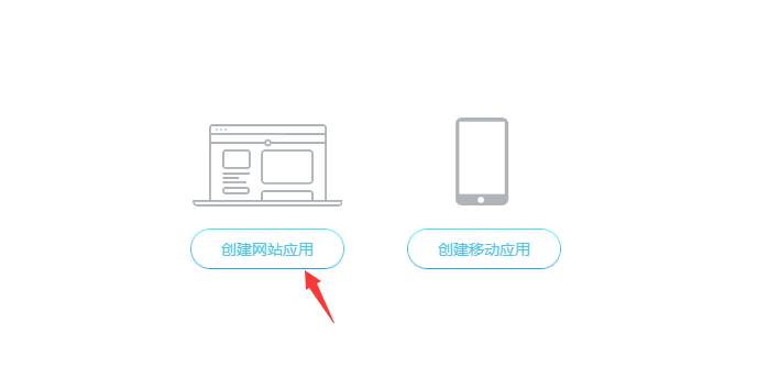 2.创建应用,选择创建网站应用,应用类型可都选择其他,网站名称及网站介绍按自己需求填写即可(一般审核网站名称需要与域名备案名称有关联更容易通过,但是有时候无关联也会审核通过,这个取决于审核人员)。