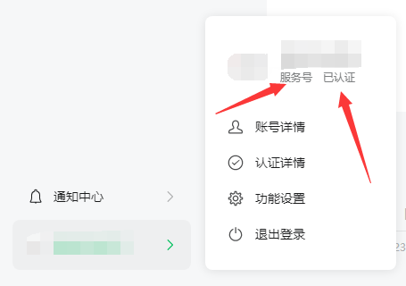 2.登录公众号后需确认公众号为服务号,且已认证。